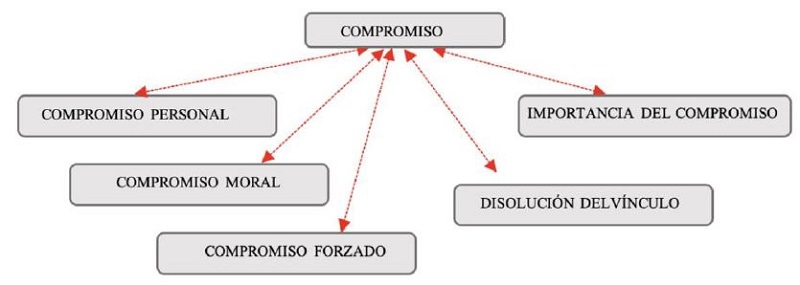 El eje compromiso se refiere a la decisión de permanecer en la relación y contempla tres factores: personal, forzado y moral (Johnson, 1991). Por tanto, se utilizaron las categorías compromiso personal, compromiso forzado, compromiso moral, responsabilidades, separación e importancia del compromiso.