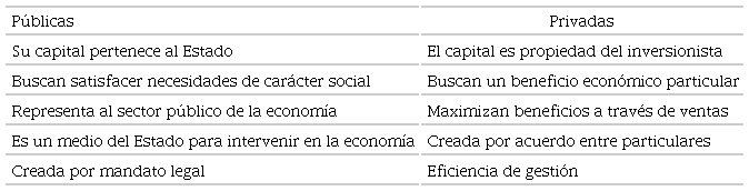 Las organizaciones en México se clasifican como públicas, privadas o mixtas dependiendo de su origen legal, así como de la aportación del capital con que cuentan para la consecución de sus objetivos. La empresa privada es una organización que incorpora los postulados básicos del capitalismo y se conforma de aportaciones de capital privado. El objetivo principal de la empresa pública es la de invertir dicho capital con el fin de obtener una ganancia que permita la sobrevivencia de la organización (Tabla 3).