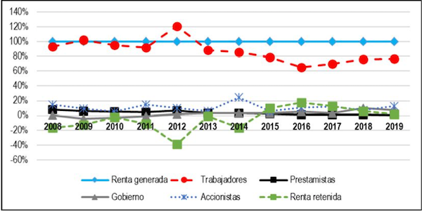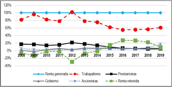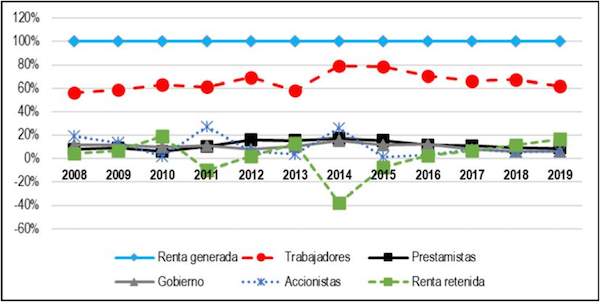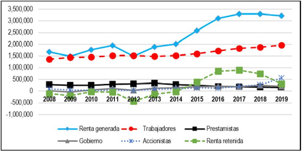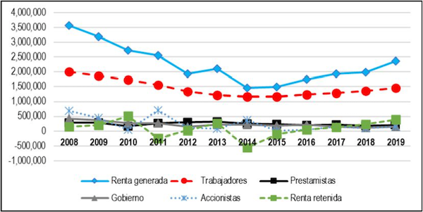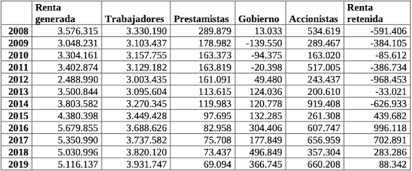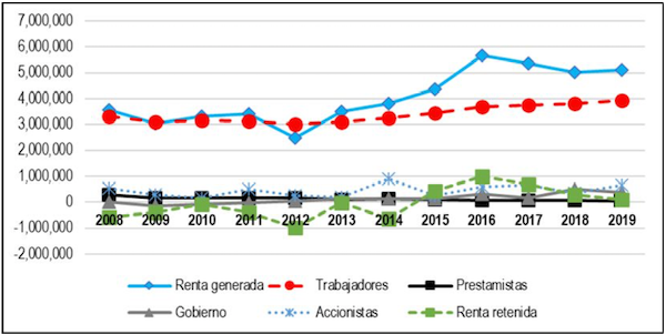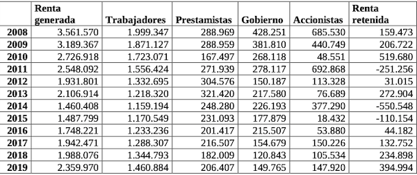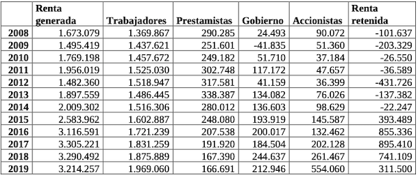 En el presente trabajo se pretende dar respuesta a la cuestión de si dicho estado contable es relevante para la toma de decisiones de los grupos de interés, en especial los trabajadores. Así, por una parte, se analizará por qué desde los puntos de vista institucional y empresarial ha existido cierta reticencia a difundir dicho estado contable, en un contexto de creciente presión social para que las compañías rindan cuentas de su gestión e informen acerca de cómo distribuyen entre los diferentes agentes sociales las rentas generadas con su actividad. Por otro lado, se valorará la practicidad de los métodos de cálculo de rentas generadas y distribuidas como medio para medir la importancia relativa de los grupos de interés en la gestión corporativa. Para ello, se partirá de tres casos relativos al sector de la automoción, la construcción y el alojamiento hotelero en España, a través de los cuales se mostrará e interpretará la evolución del reparto de las rentas generadas entre los principales grupos de interés (trabajadores, prestamistas, gobierno, accionistas) y la propia empresa, desde el inicio de la crisis financiera de 2008 hasta 2019.