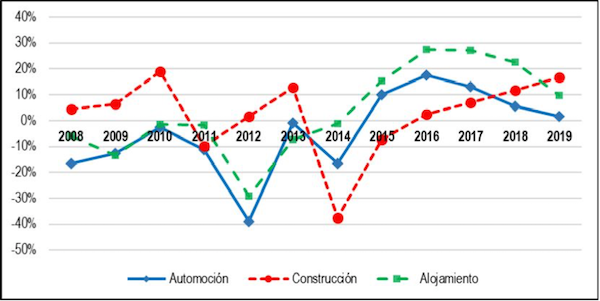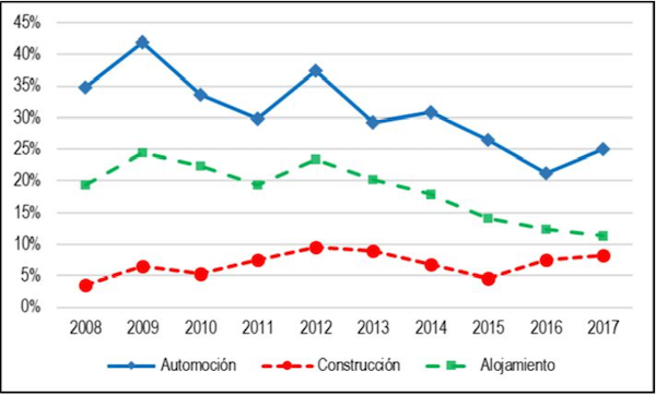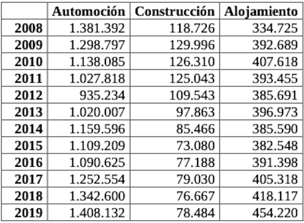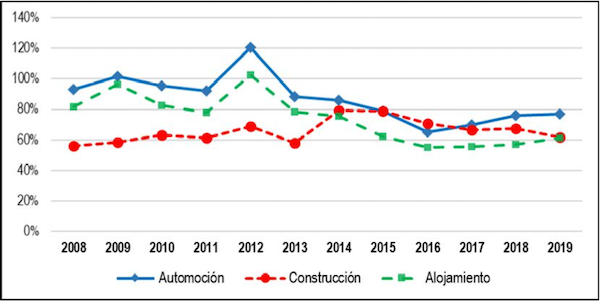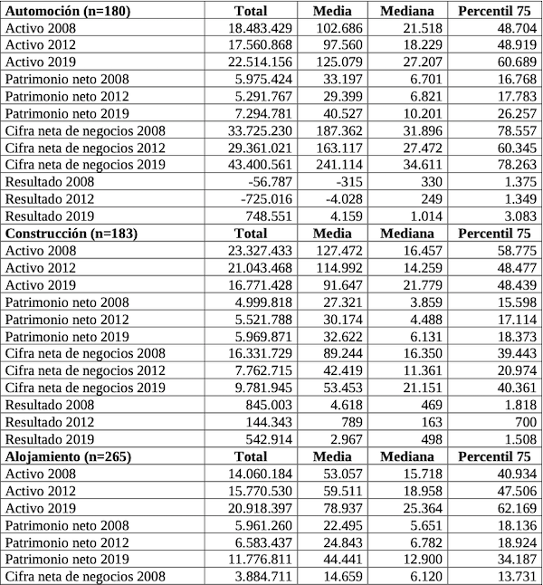 La razón justificativa de haber seleccionado estos tres sectores radica en su obvia diferenciación en cuanto al peso de la tecnología y la mano de obra. Así mientras el sector de automoción es intensivo en el consumo de inmovilizado; la construcción y el alojamiento hotelero lo son en el uso de mano de obra. Por otra parte, el sector de la construcción fue uno de los damnificados durante la crisis de 2008 y el sector del alojamiento hotelero es considerado estratégico en una economía dependiente del turismo como es la española.