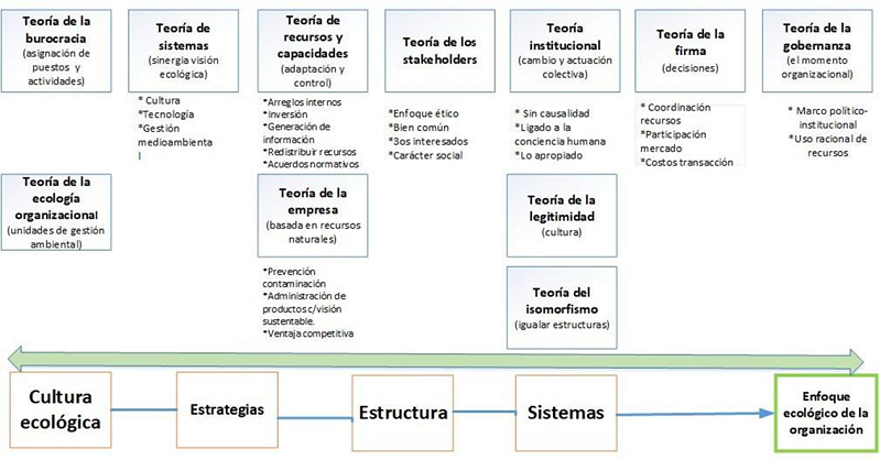 La relación entre las teorías organizacionales y su camino hacia el enfoque ecológico se representa en la Figura 2.