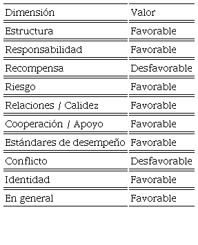 Para conocer el clima organizacional se utilizó la herramienta creada por Litwin y Stringer y se obtuvo un resultado favorable.