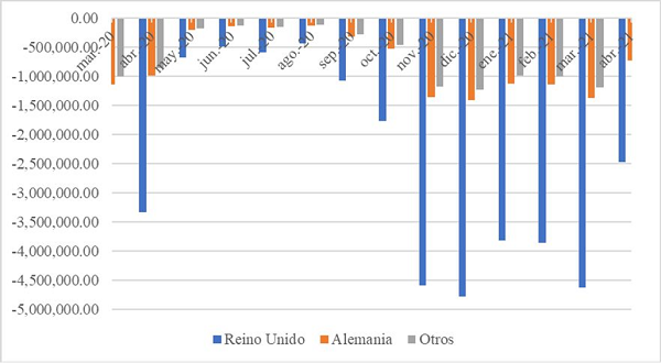 Para llevar a cabo el siguiente análisis se tendrán en cuenta los porcentajes de 2019, los cuales aplicaremos a las pérdidas totales para poder cuantificar las pérdidas que provienen de cada país de procedencia de los pasajeros (véase Tabla 7 y Gráfico 11).