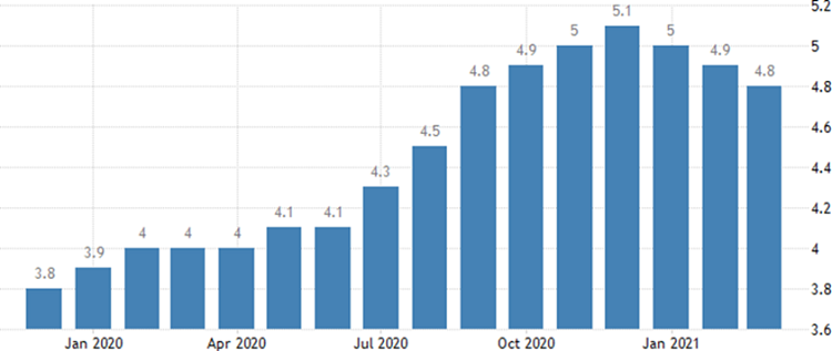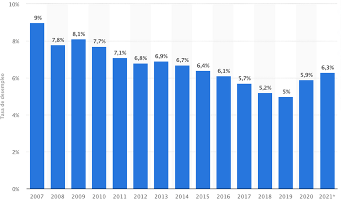 Siguiendo con la situación económica actual de Reino Unido, durante el 2020 su economía se contrajo en casi un 10%, lo que implica que el COVID-19 afectó a la economía inglesa más que a la alemana. Sin embargo, según las previsiones más recientes por parte del Banco de Inglaterra la recuperación económica de Reino Unido será mucho más acelerada, estimando una vuelta a los niveles económicos previos a la pandemia a finales de este año con un crecimiento de la economía en un 7,25%, en vez del 5% estimado inicialmente. Sin embargo, Reino Unido ha perdido parte de sus exportaciones a la Unión Europea debido al Brexit, por lo que es posible que estas predicciones sean demasiado optimistas.