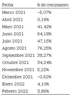 Debido al tamaño de la muestra y a las limitaciones del modelo no se ha podido predecir un período mayor, no obstante, se ha ampliado dos años más, llegando hasta 2024, aplicando la misma tendencia de crecimiento seguida en los dos años anteriores por el modelo ARIMA. Para obtener estos porcentajes, se comparó cada mes con el mismo mes del año anterior. Los porcentajes de crecimiento obtenidos fueron los siguientes (véase Tabla 2).