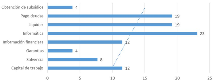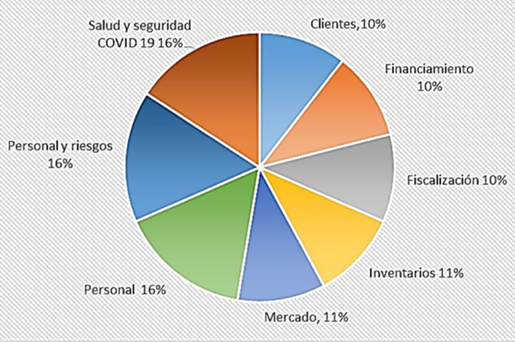Como se gráfica, se identificaron acciones dirigidas a liquidez (19%), solvencia (8%), garantías (4%) , emisión y control de información financiera (12%), informática como capacidad operativa (23%), pago de deudas (19%), protección del capital de trabajo (12%), y la posibilidad de obtener subsidios (4%), con una tendencia general en búsqueda de salud financiera y mantenimiento del capital en el ciclo económico de la nueva realidad COVID-19.