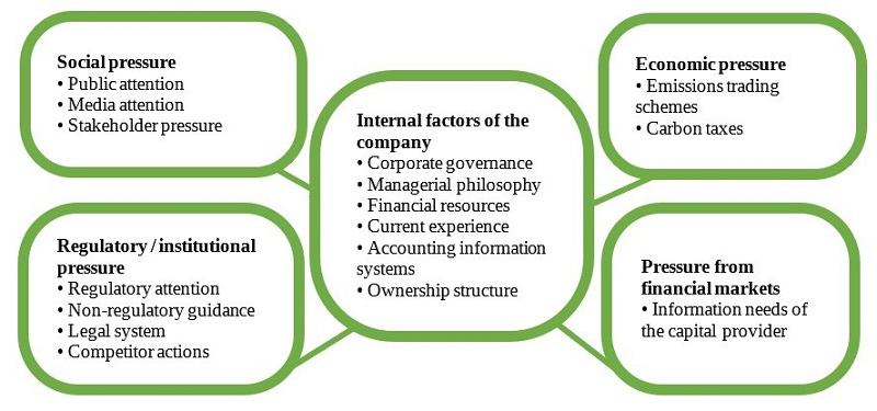 The second key area within carbon disclosure is the study of the factors that drive organizations to measure, value and disclose their carbon-related information. Carbon determinants can be understood as "the reasons why some organizations voluntarily disclose their climate actions, while others do not, exploring the "motivations", "drivers" and "barriers" to carbon disclosure. " (Borghei, 2021, P. 8).