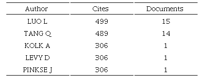 On the other hand, among 5 authors, they collected 43.2% of the citations of the total citations collected (4,409), which we can see in Table 2.