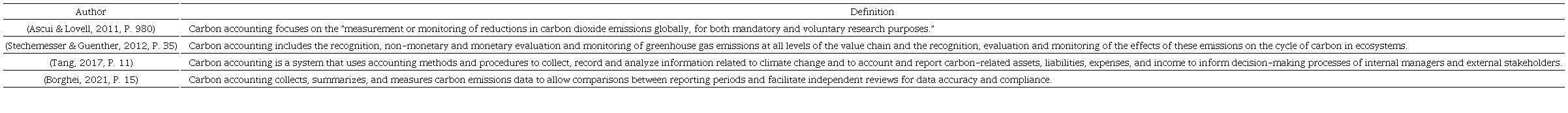 Carbon and its related topics have been the subject of multiple studies in recent years, however, in the literature it can be found that there are terms that continue to be confused with each other since they are used interchangeably, such as carbon accounting, carbon reporting, carbon performance and carbon disclosure (Kolk et al., 2008; Pattberg, 2017; Velte et al., 2020).