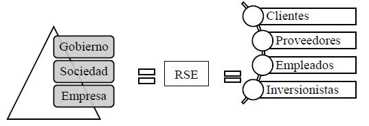 Por otro lado, es primordial considerar las partes interasadas, principalmente a los más directos que serían los clientes, proveedores, empleados e inversionistas, a la hora de hablar de RSE. Por lo que la figura 2 detalla la vinculación teoríca de la RSE con la teoría de las partes interesadas. La cual esta totalmente relacionada con la revisión de la literatura anterior donde se destaca que para que exitsa RSE son necesarios tres pilares fundamentales los cuales son el gobierno, la sociedad y las empresas, pero al mismo tiempo esa RSE tiene que estar destinada a las partes interesadas principales que son en ese orden, clientes, proveedores, empleados e inversionistas.