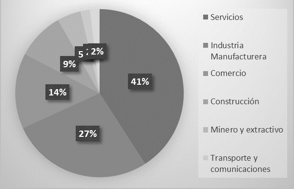 Los siete sectores donde se desempeñan las PYMES analizadas son servicios, industria manufacturera, comercio, construcción, minero y extractivo, transporte y comunicaciones y agropecuario.