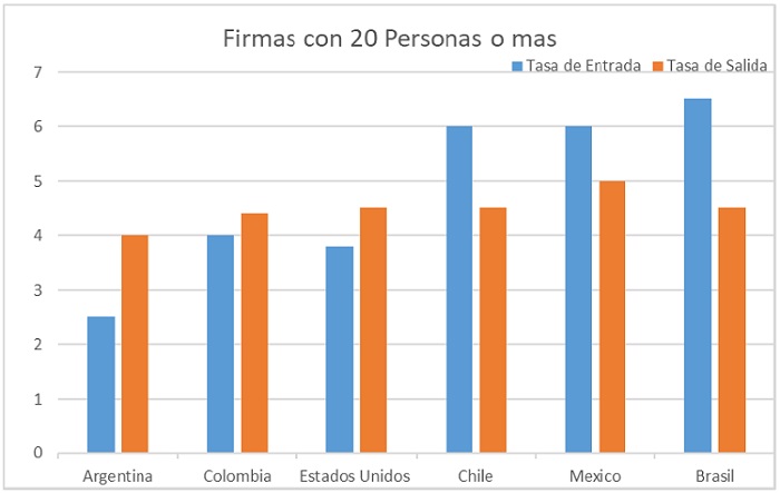 En las empresas con 20 empleados o más, el problema se agrava, ya que el promedio de mortandad con nacimiento de empresas, alcanza el 104% , lo que implica que el porciento de mortandad rebasa al porcentaje de creación de las Mipymes en la última década, lo que es sumamente crítico, ya que representa una falta de crecimiento real en el sector de las Mipymes, siendo que este sector es el sector que más aporta el porcentaje del PIB en los países seleccionados para el estudio ya que alcanza hasta el 66% de PIB nacional en los países objeto de estudio en promedio.