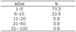 Los resultados muestran que la mayoría de las empresas que fueron encuestadas tienen de 1 a 5 años de operación, lo que refleja el hecho de que son nuevas en el mercado. Los menores porcentajes se encuentran en empresas que tienen más de 20 años de operación lo que indica que son muy pocas las empresas comerciales que presentan alta longevidad en sus operaciones (ver tabla 2).
