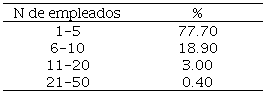Otro de los datos sociodemográficos encontrados fue el número de empleados, los resultados muestran que el mayor porcentaje de empresas encuestadas cuentan con 1 a 5 empleados, por otra parte, son muy pocas las empresas que tienen más de 20 empleados colaborando en ellas, por lo que la mayoría de los casos analizados corresponde a microempresas (Ver tabla 3).