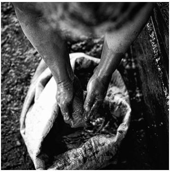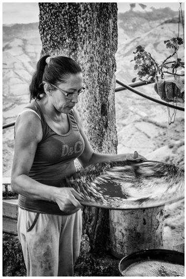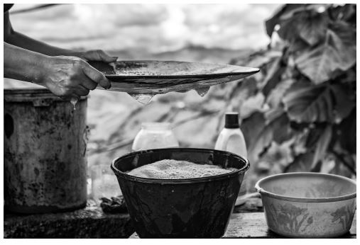 Aunque en otros viajes acompañe a doña Patricia adentro de las minas, a guachear y a trasladar bultos, en este primer contacto estaba decidido a conocer y retratar la maravillosa capacidad de separar el oro de las impurezas con tan sólo un plato de madera, agua y jabón, paciencia y habilidad.