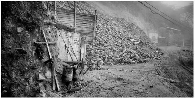 Los derrumbes en minas son más comunes de lo que uno esperaría y desearía, y no son historias que quisiera escuchar en estos momentos, pero a Alejandra esto parece no importarle, ya que no deja de contarme una y otra vez que tal o cual boquete se derrumbó hace unos meses. Mientras tanto se sumerge en un hueco que pasa por debajo de la guía a rellenar bultos de material para luego subirlos a fuerza de brazo, ayudada con una soga y una pequeña roldana.