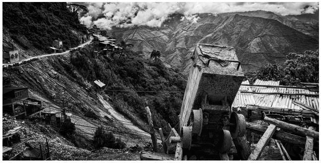 Tras el desencuentro de la noche anterior, el amanecer en Marmato es la antítesis de la calma que reinaba unas horas atrás. Decenas de motos recorren la estrecha calle principal del atrio. Mineros que van y vienen, camionetas cargadas de material, “volquetas” y gente a pie. Entre tanto caos organizado por fin logré encontrarme con mi contacto. Lizbeth es una secretaria de la asociación que muy amablemente me llevó a recorrer las minas del pueblo, su vía principal y los accesos. Sin embargo, y aunque fue muy ilustrativo el recorrido, no era lo que estaba buscando. Decidí que tenía que enfocar el trabajo de otra forma. Pero…, ¿Cómo es el proceso de extracción tradicional del oro?