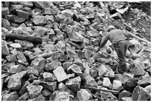 A diferencia de la extracción a cielo abierto, la minería tradicional implica realizar boquetes en el cerro para la extracción del material. El mismo se carga en “bultos”, bolsas sumamente pesadas que son sacadas en coches por una vía en la “guía” (vía principal del boquete) de la mina, utilizando carros empujados por los mismos mineros.