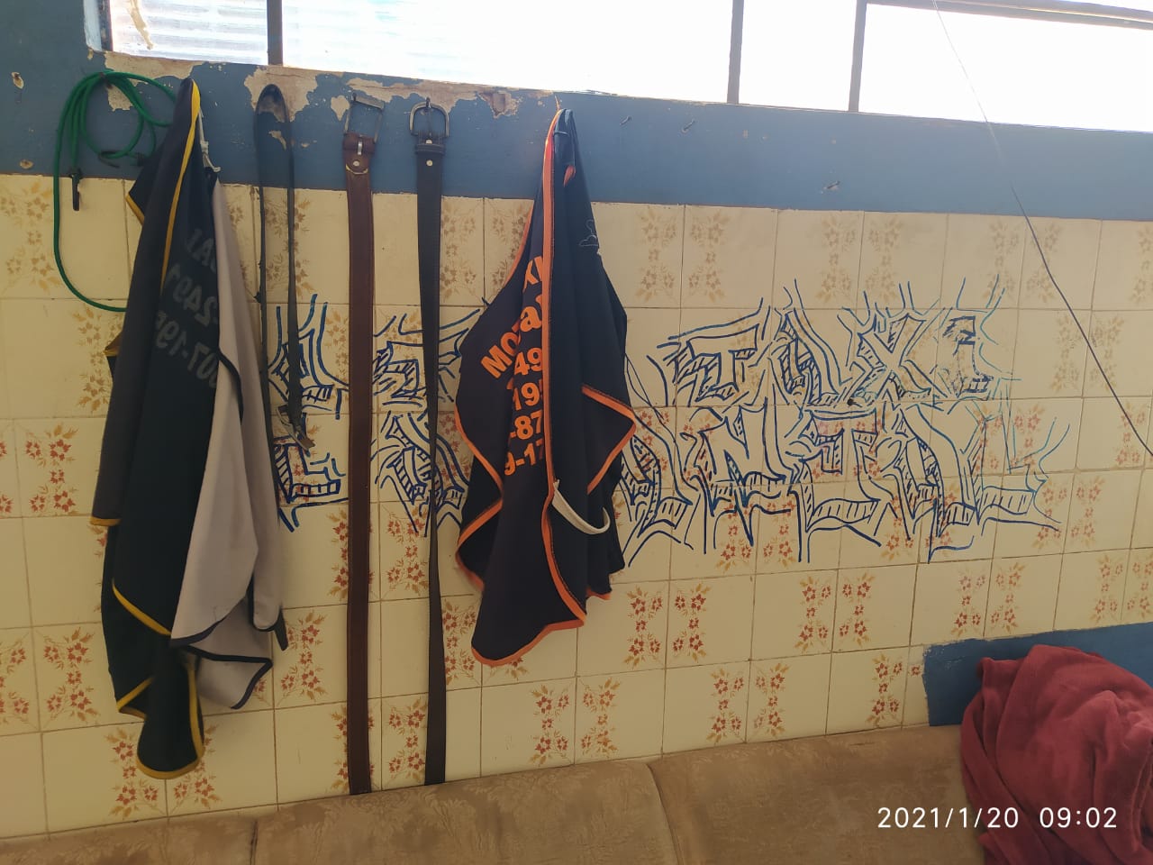 Mediante o cenário de riscos e ameaças sobressaem as explicações da ordem da fé. No cartão de visita de uma das “bases” que visitamos uma frase chama atenção e está em sintonia com o salmo pintado na parede. “Feliz é a nação cujo Deus é o senhor” (foto 2)em letras vermelhas, sustentando simbolicamente, e impregnando de sentido, como um tônico, a vida dos interlocutores. Não só as explicações e sentido(s) produzidos pela ordem do sagrado, alguns outros marcadores simbólicos são orquestrados nas diversas bases do mototáxi. O desenho dos coletes, a identidade visual e simbólica de cada “base”10, o grafite demarcando na parede (foto 3) o nome da “base” criada pelos próprios mototaxistas, dividem na prática, o tempo de ócio e o tempo de trabalho, a sobrevivência e a vivência. De um lado, estas práticas (artísticas e simbólicas) ajudam a lidar com o tempo de ócio, por outro, impregna o tempo de trabalho de sentido(s) compartilhados entre os pares. Podemos observar que a pesquisa etnográfica é capaz de permitir uma compreensão relativa da cultura, neste sentido entendemos a prática antropológica e a etnografia “não como uma ciência experimental em busca de leis, mas como uma ciência interpretativa em busca do significado” (GEERTZ, 2012, 15), derivado disso buscamos uma perspectiva da cultura onde “A cultura (está localizada) na mente e no coração dos homens” (Goodenough, apud. GEERTZ, 2012, 30).