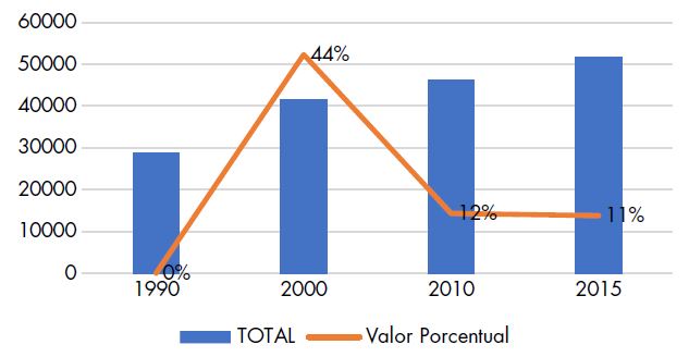 En el caso de la cabecera municipal de Xonacatlán su proceso de urbanización ha continuado hasta la fecha, y esto se hace visible al analizar su crecimiento demográfico, el incremento de sus unidades económicas, la disminución en su producción agrícola y la extensión de su mancha urbana. La figura 1 ilustra la evolución demográfica en el municipio. La figura 2 muestra el comportamiento de las unidades económicas; y la figura 3 su distribución territorial.