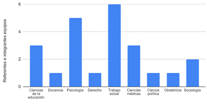 En lo que respecta a su formación, la mayoría de quienes coordinan e integran las consejerías son egresadas de carreras pertenecientes a las Ciencias Humanas y Sociales, con una fuerte presencia del Trabajo Social. En segundo orden de importancia aparecen también profesionales de lo que podríamos denominar como Ciencias de la Salud, en especial Psicología y Medicina generalista.