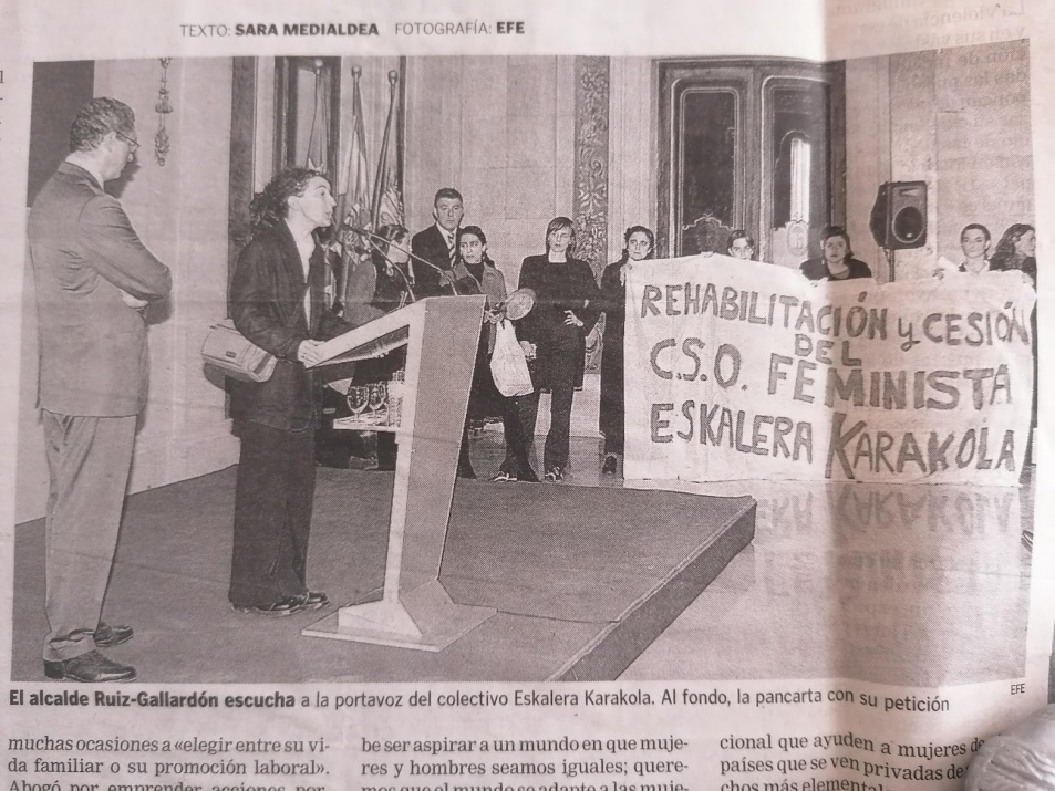 Cristina Vega: Absolutamente. Mi familia siempre ha sido progresista. Yo no vengo de una familia rancia y tampoco religiosa. Mis padres eran personas que, a pesar de que no estaban comprometidas políticamente, eran claramente progresistas y eran contrarias a la dictadura. Mi padre tenía muchas claridades en ese sentido y nos transmitió eso con convicción. Junto a mi madre, nos transmitió que mi hermano y yo éramos iguales, que ambos podíamos entrar y salir, estudiar, etc. Además, somos una familia con una composición muy femenina, con varias madres solas, con apertura hacia la diversidad sexual, etc. Pero para mí fue muy clave la llegada a la universidad. Yo militaba, como les decía, en el movimiento estudiantil, pero sentía mucho desasosiego con el tema del machismo que veía a mi alrededor. Y muy pronto entré en la Asamblea Feminista de la Complutense. En la facultad en la que yo estaba, en Filología, creamos nuestra propia asamblea y enseguida empezamos a movilizarnos. Tanto es así que protagonizamos la primera denuncia de machismo a un profesor en 1988; portada en El País. En el ambiente universitario, especialmente en las carreras feminizadas, era muy normal el machismo, formas de abuso de todo tipo y nosotras iniciamos un proceso de agitación con esto. Nuestra escuela era revolucionaria, queríamos cambiar las estructuras verticales, las más visibles, pero también aquellas que eran más sutiles pero persistentes, aquellas que penetraban las aulas, los bares, los partidos y las organizaciones, las familias, las camas. La Asamblea Feminista fue para mí una escuela fundamental y me ayudó a poner nombre al malestar que sentía, que sentíamos colectivamente. Éramos parte del movimiento feminista, que en aquellos años era muy fuerte y vital. Teníamos nuestras maestras, que también tenían doble militancia en los partidos de izquierda. Eran mujeres lesbianas, mujeres feministas y también muchas mujeres latinoamericanas exiliadas, de Chile, de Argentina. Estábamos rodeadas de personas que también habían vivido dictaduras en otras regiones y formaban parte de la militancia en aquel momento.