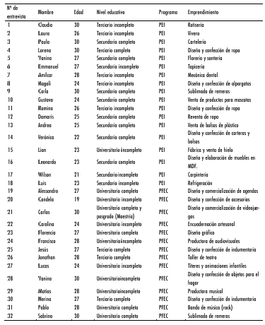 Desde entonces, las políticas orientadas a mejorar los procesos de inserción laboral de este colectivo incluyeron –e incluyen– diversos tipos de intervenciones: cursos de capacitación laboral y/o formación ocupacional, acciones de orientación sociolaboral, pasantías y/o prácticas en espacios de trabajo, programas de primer empleo, de acompañamiento en la terminación de estudios de nivel secundario, y aquellas orientadas a estimular el autoempleo y el desarrollo de microemprendimientos juveniles (Amargós, 2004; Jacinto, 2010). Aunque el campo de estudio sobre estas políticas tiene un vasto desarrollo, varios autores (Rodríguez, 2002; Jaramillo, 2004; Weller, 2007; Jacinto, 2010) han señalado que existen pocas investigaciones centradas en las acciones orientadas al autoempleo y a la promoción de los microemprendimientos juveniles.