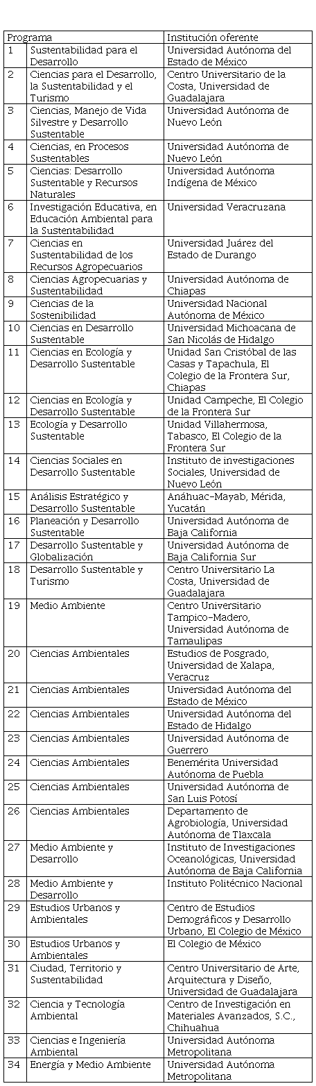 Para llevar a cabo el análisis correspondiente, se consideraron 34 programas doctorales relacionados con la sustentabilidad, ofertados en México en el año 2020 ( ver Tabla 1), que a través de la revisión del objeto de estudio y sus objetivos, permitió determinar el enfoque de dichas currículas.