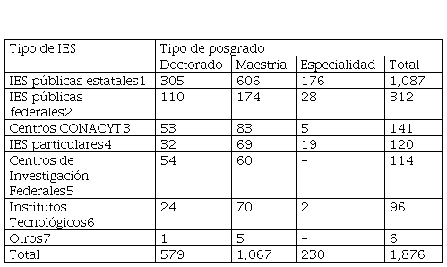En el ciclo 2019-2020 la oferta de posgrado en México registró un aumento, agregándose 1,647 programas, para sumar un total de 6,969 curriculas que ofertaron 1,423 instituciones, de las cuales 1,134 fueron particulares y 289 públicas. De este total, el 60.7% correspondió a planes de maestrías, 26.5% especialidad y 12.8% de nivel doctoral ( CONACYT, 2020).