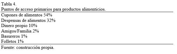 Se observa que las despensas proporcionan la segunda fuente más alta, después de las compras relacionadas con los cupones de alimentos.
