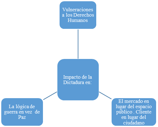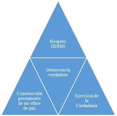 Se podría sintetizar lo ocurrido, diciendo que la transformación estructural llevada a cabo por la dictadura afectó tres ejes interrelacionados entre sí: Derechos Humanos, Ciudadanía y Paz (Figura 1).