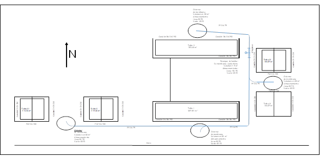 Posteriormente se realizó un plano de la escuela, como se muestra en la Figura 2, para medir las superficies aptas para captar la lluvia, que además sirvió más adelante para presupuestar la tubería, los canalones y la ubicación de los demás elementos.