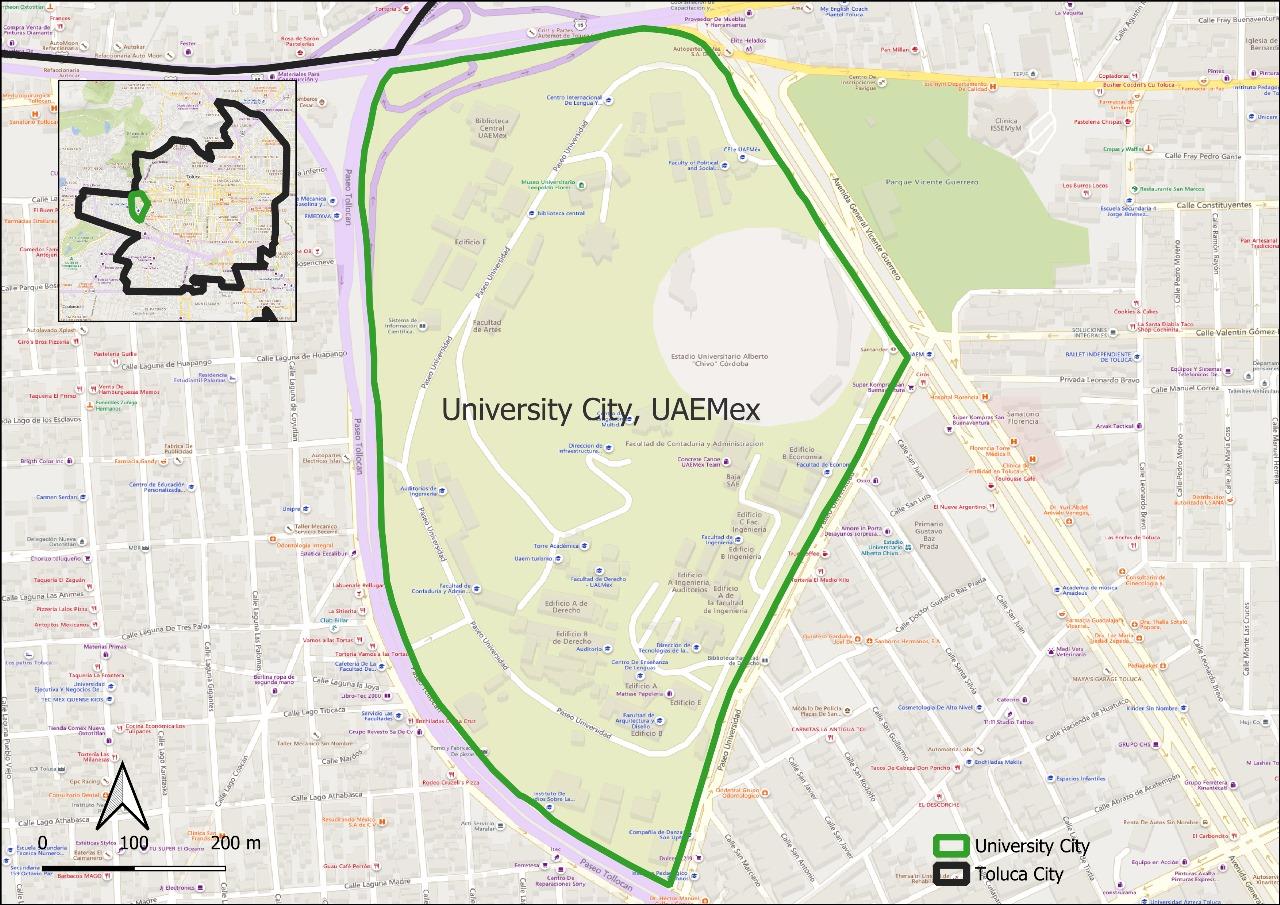 The mobility services in Autonomous University State of Mexico, University City, located in Toluca campus, is the largest campus with which the University has a total area of 367,065 m2, an enrollment of 23,271 students and 2,250 (employers and academics), housed in 80 buildings of which ten are faculties, figure. 1, (PRDI, 2021). The stakeholder’s group representative from University: academics, students and employers in ten University spaces (Architecture and Design, Arts, Political and Social Sciences, Accounting and Administration, Laws, Economics, Geography, Humanities, Tourism and Gastronomy, and Engineering).