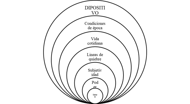 Se propone un proceder metodológico hermenéutico analógico, porque “exige estudiar las diferencias para las que se va a educar, conforme a la cultura en la que se educa […] también debe tratar de encontrar los valores universales que no pueden faltar de esa formación” según lo ha planteado en su obra Mauricio Beuchot (2022, p. 86). Por otro lado en esta indagación se pone el centro en elementos que conforman al dispositivo, esto es: los saberes, las líneas de poder, de subjetividad y de ruptura o quiebre, según lo han desarrollado Foucault (1994), Deleuze (1990) y Agamben (2014), además será necesario tocar brevemente otras líneas del dispositivo porque el mismo se presenta en la realidad como una madeja o entramado, es decir están intrincados asimismo con la vida cotidiana (Heller, 1987).