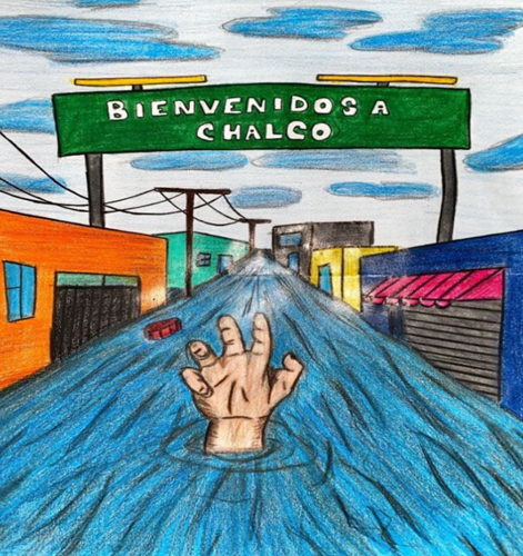 De acuerdo con Steffen y colaboradores (2015), algunos de los límites planetarios tienen expresiones regionales muy marcadas que sesgan su valor de operatividad. Por ejemplo, en cuanto a extracción de agua que excede la capacidad de sus cuencas, sobresalen la India, la porción noreste de China, Oriente Próximo, la Europa mediterránea, la costa oeste de Estados Unidos y el Valle de México. En este contexto, los estudiantes perciben como el cambio climático impacta su Estado, en este caso, la figura 9 resalta las inundaciones que se registraron en la comunidad de Chalco y Valle de Chalco poniendo en riesgo a su población, por un lado, los niveles de más de un metro que alcanzó el agua, dejó pérdidas económicas en los habitantes de esas áreas, pérdida de empleo y enfermedades por las condiciones de poca o salubridad que existía. Los alumnos percibieron las afectaciones y percibieron su ciudad y la complejidad del espacio urbano afectado por las precipitaciones que se registraron y que no daban tregua.