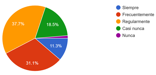 En esta sección se presentan y comentan las figuras que representan los porcentajes correspondientes a los resultados obtenidos para cada pregunta de la encuesta a los estudiantes universitarios de la licenciatura de diseño industrial.