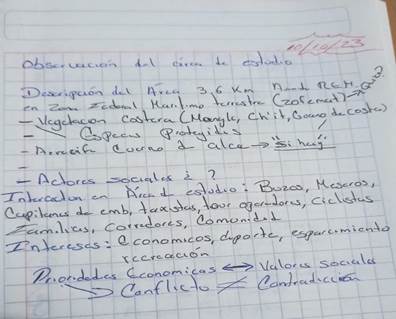 Asimismo, se presenta un ejemplo aleatorio de las notas registradas en el diario de campo (Figura 2) como herramienta fundamental de identificación de actores y estructuración de las entrevistas semi estructuradas.