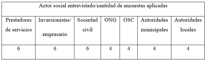 Organizaciones de la sociedad civil: Grupos comunitarios que buscan establecer vínculos con los tres sectores sociales: el privado-empresarial, social-civil y el sector gubernamental-municipal. Estas organizaciones se enfocan en la participación e implementación de proyectos sociales y ambientales para abordar los problemas comunitarios. Es importante destacar que los participantes en este caso tienen edades comprendidas entre los 33 y 45 años, con niveles de educación que van desde licenciatura hasta doctorado.
