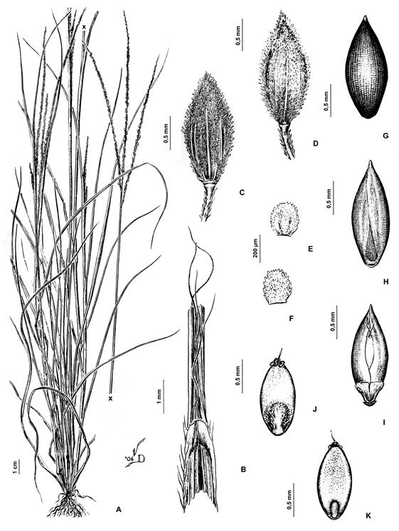 Rijks-Herb. 61: 8. 1930. Paspalum fuscescens J. Presl, Reliq. Haenk. 1 (4-5): 213. 1830. TYPE: “Hab. in regione montana Peruviae” changed to “Hab. ad Monte-Rey Californiae” (on p. 351), T. P. Haenke s.n. (holotype PR; isotype BM!).