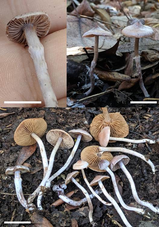 Paraladescripciónmicroscópicaseutilizóelmétodo de examinación estándar para Agaricales (Wright & Albertó, 2002). Se realizaron cortes en: la superficie del píleo para observar la pileipellis; las laminillas para describir basidios, cistidios y esporas; y el estípite para caracterizar caulocistidios y estipitipellis.