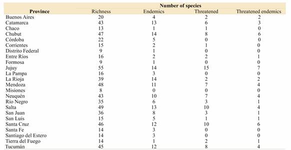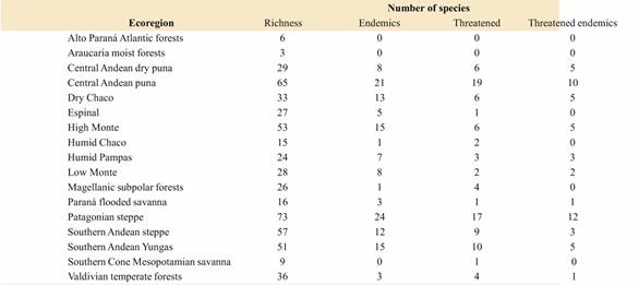 Keywords: Andes, Argentina, Central Andean Puna, conservation, endemics, IUCN, Patagonian steppe, richness.