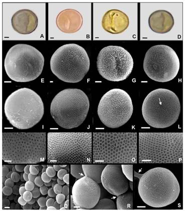 El estudio palinológico se realizó con MO y Microscopio Electrónico de Barrido (MEB) con y sin tratamiento químico. Se observaron 25-30 esporas de cada especie y se analizaron los siguientes caracteres: modo de dispersión, forma, diámetro, tipo de lesura y ornamentación. Las esporas fueron acetolizadas (Erdtman, 1960), durante 2 minutos. Las observaciones se hicieron utilizando un MO Olympus CH-2.