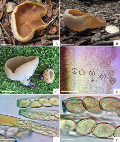 Peziza cfr. ampliata Pers., in Pant, Mycol. eur. (Erlanga) 1: 227 (1822). Mycobank no. 245810. Fig. 7 C, D.