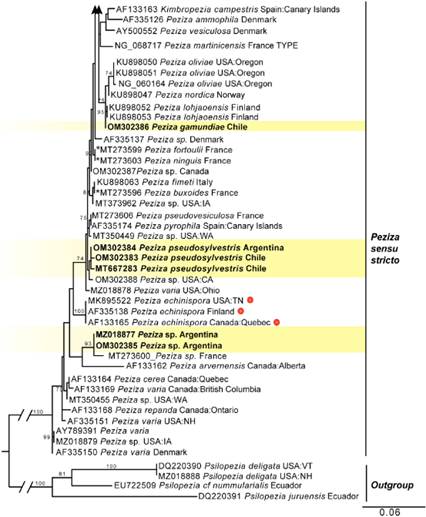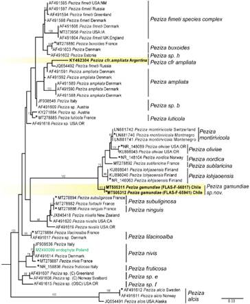 Keywords: Argentina, Chile, generic assignment, pezizaceae, phylogeny, subantarctic forests.