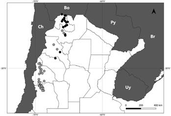 Cabezas 38 (SI, 1) Cabrera 9321 (SI, 1) Cabrera et al. 15238 (SI, 1) 24288 (SI, 2) 27076 (SI, 2) 27421 (SI, 1) 29543 (SI, 2) 31068 (SI, 2) 31069 (SI, 2) 31304 (SI, 2) 31861 (SI, 2) Carette s.n. (BA, 2) Castellanos s.n. (BA, 1) s.n. (BA, 2) Cialdella et al. 494 (SI, 1) 510 (SI, 1) Covas s.n. (SI, 2) 678 (SI, 2) 1841 (SI, 2) 2198 (SI, 2) 2207 (SI, 2) 15067 (SI, 2) 18419 (SI, 2) Crovetto & Piccinini 7256 (BAB, 2)