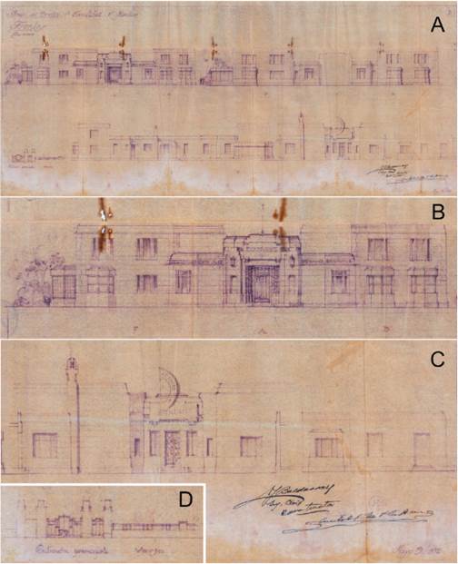 - El formulario de la foja 12 plantea la duda acerca de si la obra se encontraba ya iniciada para esa fecha (5 de septiembre) en tanto se proponen terminarla el 30 de noviembre de ese año. De hecho, la fotografía publicada en el diario La Prensa el 18 de mayo de 1933 (Anónimo, 1933, Fig. 6D) muestra una obra casi terminada en el escaso término de cuatro meses, si suponemos que la construcción comenzó el 5 de diciembre de 1932, fecha de la autorización municipal. ¿Podría haber comenzado antes (por ejemplo, el 5 de septiembre, cuando se inicia el expediente) y luego interrumpida debido al conflicto planteado por tratarse de una institución construida en un barrio residencial? Conflicto que habría requerido la intervención del Intendente, del Honorable Concejo Deliberante y de la Comisión de Obras Públicas. Es interesante observar que los planos están fechados el 19 de mayo de 1932 (Fig. 8A y Fig. 10A, C).