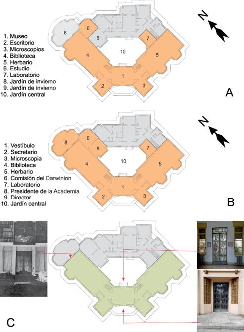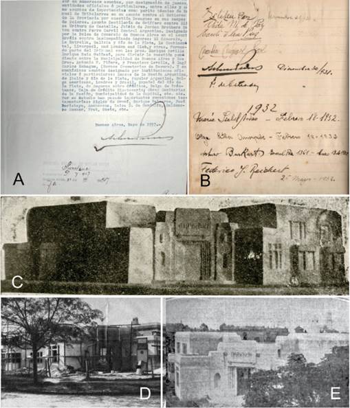 “<<Darwinion>> en construcción, cuyos arquitectos son los señores Arturo Prins y Fernando Estrada (sic), que han sido alumnos del Dr. Hicken”. (Porter, 1933: 181) (Fig. 6C).