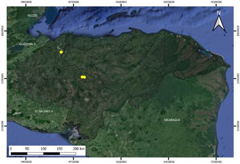Currently known from two localities in the central and northwestern parts of Honduras, specifically from La Masica (Esquías municipality, Comayagua department), and Guaruma Uno (San Manuel municipality, Cortés department), at elevations of ca. 540 and 70 m a.s.l., respectively (Fig. 4). Aristolochia hondurensis occurs in Tropical Dry Forest in plains and valleys, where the vines grow in secondary vegetation.