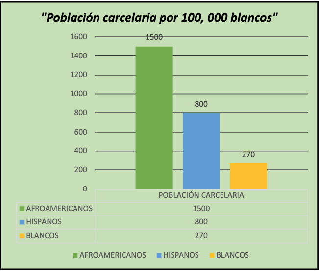 Nota: El gráfico estadístico presenta la desproporcionalidad de presidiarios afroamericanos en comparación de la población blanca. “Población carcelaria desproporcional estadounidense”, responde a los datos recopilados del Centro de Investigación Pew en el 2018, citado por EFE.