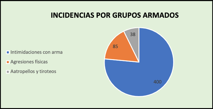 Nota: El gráfico estadístico representa el “Número de incidentes con participación de grupos armados”. En base a un total de 523 incidentes.